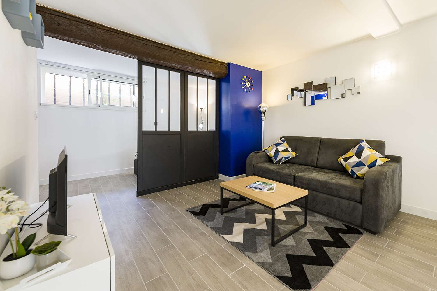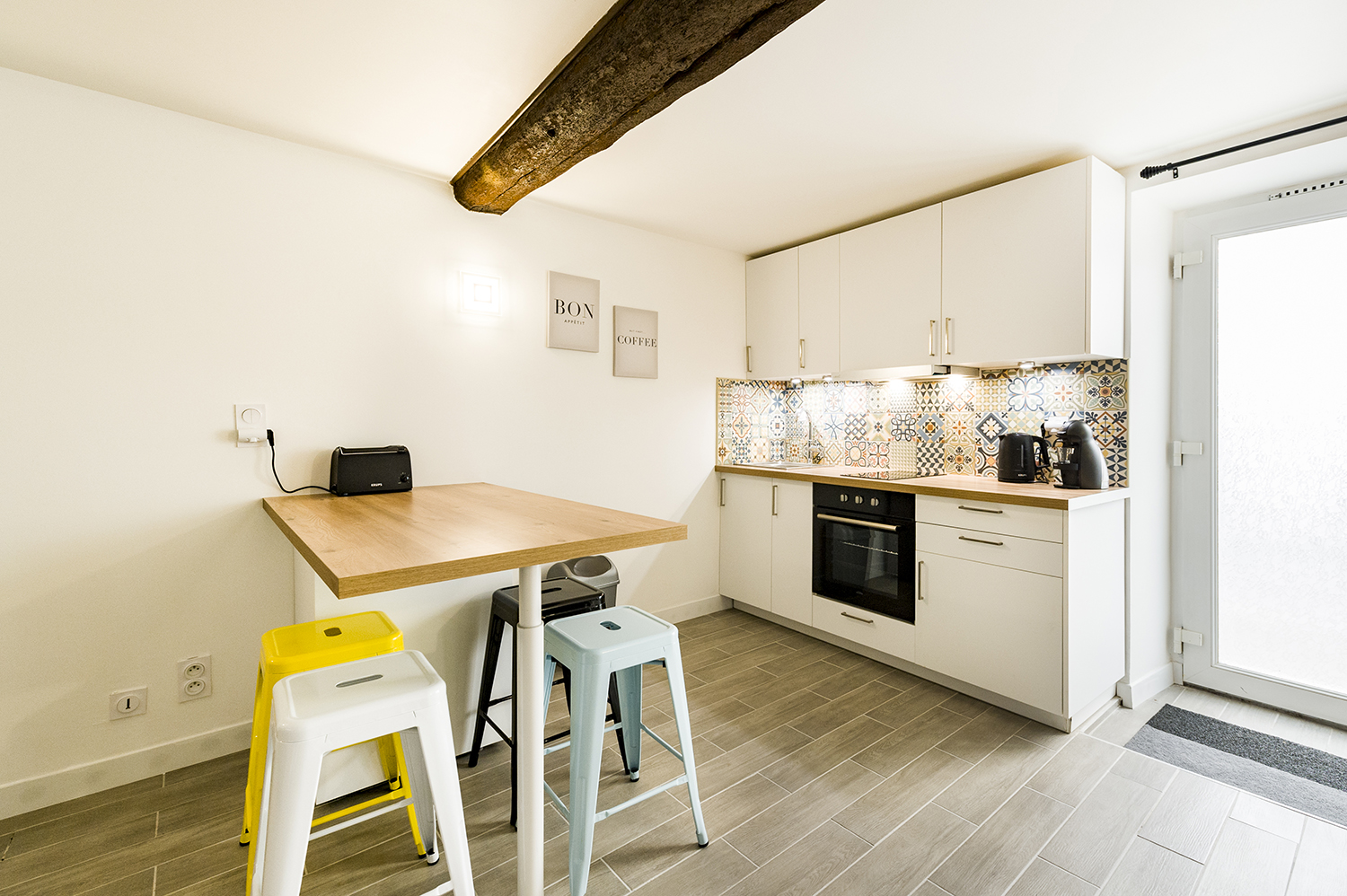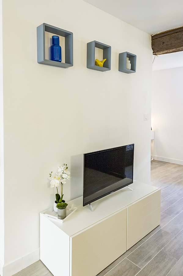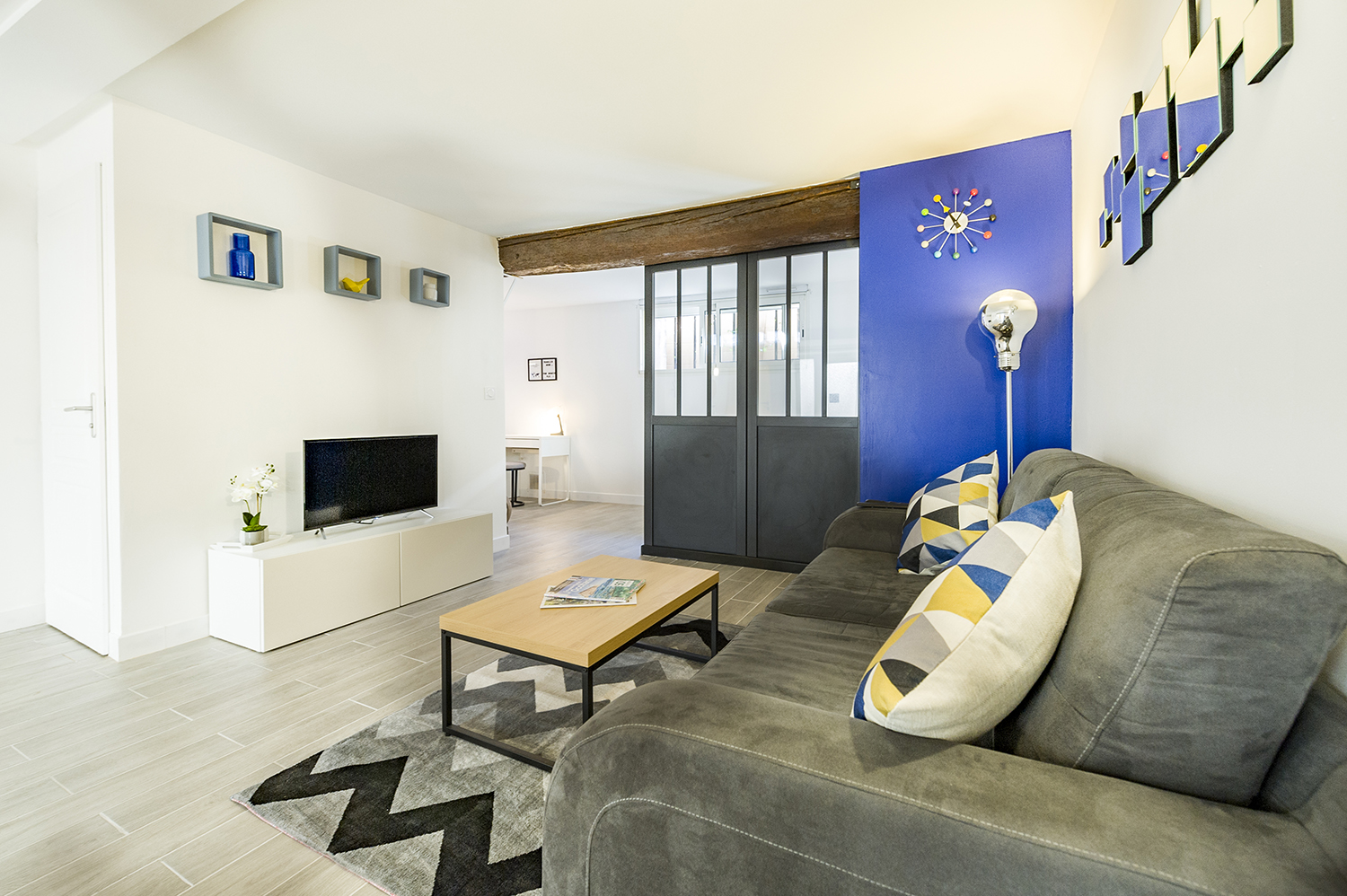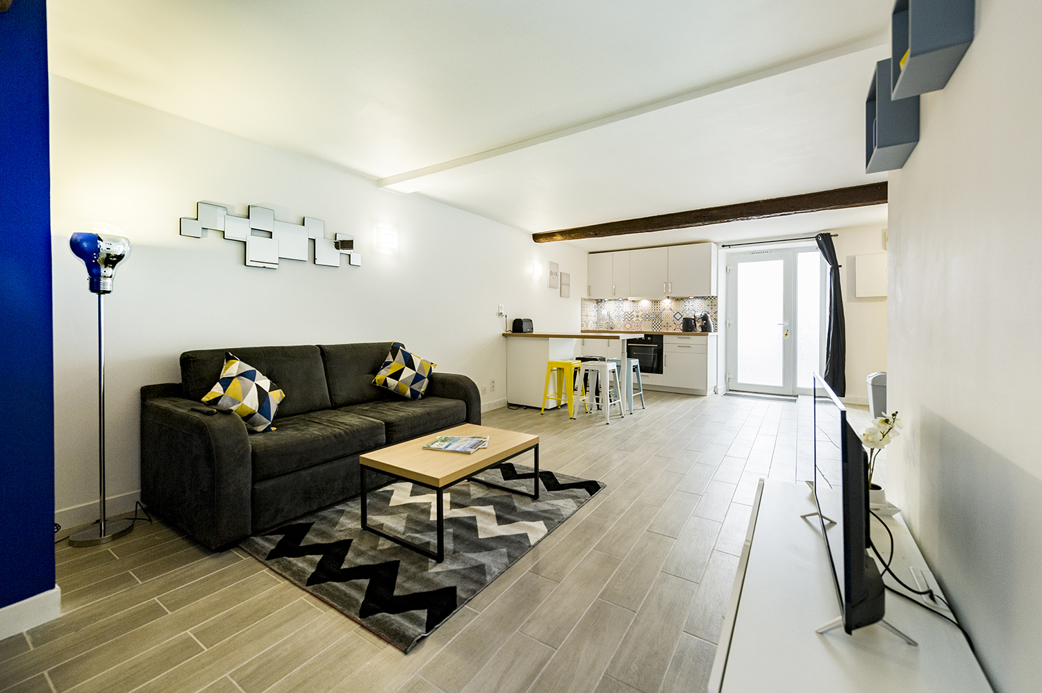 L’appartement est un grand studio de 37 m² entièrement équipé et peut accueillir jusqu’à 4 adultes. Il se compose d’une cuisine équipée et fonctionnelle donnant sur séjour, d’un coin nuit et d’une salle d’eau.